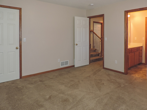 This roomy 3-bedroom 2.5-bath reverse 1.5 story duplex includes a double garage. Vaulted ceiling in living room. The living room, kitchen, primary bedroom and bath, 1/2 bath, laundry room and garages are on the main floor, no steps! Remaining 2 bedrooms, and Jack-and-Jill bath, plus lots of storage are on the daylight lower level. The kitchen has plenty of cabinets plus pantry and kitchen appliances are provided including the refrigerator. Oversized closets in all three bedrooms. Lawn mowing provided.
